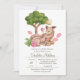 Seu novo bebê é apenas uma das muitas bênçãos que a vida lhe deu. Então, por que não convidar seus amigos e família para se juntarem à comemoração? Você pode fazer isso enviando um convite para a mãe e o bebê Deer Chá de fraldas. Este convite mostra um veado bebê e sua mãe aproveitando um momento doce perto de uma árvore. O fundo é branco com sotaques castanhos. Este gráfico de aquarela é um prazer para qualquer mãe. Use modelo fácil para adicionar os detalhes da sua festa.