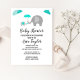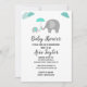 Esta Mamãe de Elefante Bebê com chá de fraldas de Nuvens é perfeita para um chá de fraldas de selva neutro em termos de gênero. A design apresenta uma adorável cinza, mãe teal e duo elefante bebê sob nuvens de bolinhas, com simples caligrafia.
