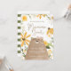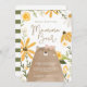 Celebre o precioso pequeno a caminho com o nosso belo urso e o nosso chá de fraldas de abelhas. Nossa design apresenta nosso urso de aquarela desenhado pela mão, com lindas flores silvestres de aquarela crescendo e enquadrando esse belo convite para chás de fraldas. Os detalhes do evento são colocados sobre a ilustração do urso de mamas fofo. O verso apresenta um padrão de faixa verde de cor d'água. Todas as ilustrações são obras de arte feitas à mão pela Moodthology.