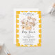 Mamães bonitinhas brancas para serem classificadas como chá de fraldas de aquarela com uma abelha fofa, e menina mexendo um pote de mel cercado por favos de mel. Um convite para chás de fraldas neutro em termos de gênero.