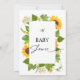 Mamães Modernas de Girassóis para Chá de fraldas de Abelhas Convite à mamães coloridas e neutras do gênero para o convite às abelhas para o chá de fraldas, apresentando um arranjo de girassol atrás de um quadro branco, algumas abelhas e um título de fontes moderno de caligrafia. Este convite para chás de fraldas coloridos para abelhas é ideal para girassol, que é o tema chá de fraldas neutro em termos de gênero.