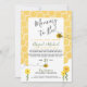 Para o seu chá de fraldas virtual com o tema de "Mamães para Abelha", o convite para chás de fraldas de abelhas com o tema de " para Abelha", com o tema de tema de abelha, fará com que todos se zombem! O design apresenta um plano de fundo amarelo de cor d'água, margaridas agudas, tipografia divertida de scripts em preto, amarelo e verde. É perfeito para chás de fraldas neutros de gênero, chás de bebês e chás de meninas! #MamãeParaSer #BebêChuva #GêneroNeutro