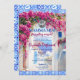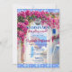Mamma Mia, ela vai se casar! A ilha grega pintada com aquarelas Mamma Mia-temida design com flores cor-de-rosa magenta de bougainvillea e azulejos mediterrânicos azuis.