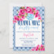 Bring the sunshine and the sparkle to her big “I do” with this vibrant Mamma Mia–inspired bridal shower invitation! Featuring bold pink bougainvillea blooms, a chic blue Mediterranean tile border, and a retro disco ball detail, this design perfectly captures that fun, flirty, seaside celebration vibe.