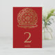 Convites Mandalá Vermelho e Dourado Número de Mesa Indiano