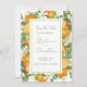 Um casamento moderno e elegante salva o convite para a data para aqueles que encontraram seu primeiro aperto. Fruta botânica de cor da água dos citros de mandarina, folhas verdes e flores com padrão correspondente no verso. Você pode alterar a fonte e a cor da fonte. Esta coleção tem convites correspondentes, salve as datas, rsvps, menus, envelopes e rótulos. Perfeito para primavera ou casamentos de verão.