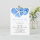 Convites para o café da manhã de casamento. Flores azuis e design de peixe-estrela branco da linha de design do Jardim da praia. A imagem está no topo do white paper. A primeira linha, em escrita azul, é, "A manhã seguinte" com uma faixa de linha por baixo do texto. A próxima linha é, "Café da Manhã com os recém-casados" e seus nomes, junto com "Sr. e Sra." vem a seguir. O último modelo contém todas as informações da parte com data, hora e local. Inclua também um RSVP, se necessário. O papel é um pouco menor que o padrão 5x7, para incluir com convites selecionados. Ou mudar o tamanho facilmente.