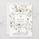 Esses incríveis convites Baptismos apresentam um buquê espalhado de lindas e delicadas flores silvestres em verde-sábio claro, esticado e roxo, com sotaques geométricos dourados falsos e cruzes sobre um fundo branco. Um design elegante e bonito.
