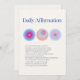 Essa design minimalista apresenta três círculos suaves em diferentes tons de rosa, criando uma estética harmoniosa e elegante. Abaixo, é mostrada uma coleção de afirmações positivas que aumentam, oferecendo mensagens de motivação, amor próprio e prosperidade. Perfeito para aqueles que buscam um lembrete diário de positividade e equilíbrio, o design combina simplicidade com impacto visual para inspirar e elevar o espírito.