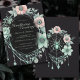 Este design de convite para o manuseio da Web Floral, impressionante e inesquecível, da Casa Gótica de Casa Verde é uma bela aranha e teia aquosa em verde-menta e rosa-claro-claro com fundo preto em um modelo fácil de editar projetado para ser livre de dor de cabeça.