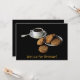 Personalize facilmente o texto deste belo convite do Brinner. Que divertido servir café da manhã para jantar. Este convite irá atraí-lo com um prato de biscoitos de manteiga de amendoim e uma xícara de espresso cheios de limão. Os biscoitos têm o padrão tradicional de cruz. A vida tranquila está casualmente organizada sobre um fundo negro.