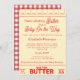 Engraçado Russo Manteiga Vermelha Gingham Testemunha Chá de fraldas Convite Adicione um toque de humor e um borrão de charme para sua celebração com nosso maldito Chá de fraldas convidado! Este adorável convite apresenta uma design de palitos de manteiga única com marcas de colher de sopa no topo, criando uma maravilhosa nostalgia da cozinha. A frente lê: "Não há nada mais que um bebê no caminho"—um trocadilho divertido que certamente fará os convidados sorrir! Projetado com fontes vermelhas rústicas e visões visuais confortáveis, este convite inclui todos os detalhes do seu chá em um layout fácil de ler. A parte de trás do cartão mostra um padrão clássico de gingham vermelho, dando a ele um acabamento quente, ao estilo de fazenda que se emparelha lindamente com chás de fraldas de café ou de padaria. Layout inspirado no palito da manteiga com marcas de colher Gingham vermelho-russo apoiando campos de texto confortáveis e confortáveis para o país: nome, data, hora, localização, informações de RSVP e registro Formato de download impresso ou digital de alta qualidade Ideal para chás de fraldas rústicos, festas de cozinha ou comemorações de brunch Este convite para chás de fraldas com tema de manteiga é uma forma doce e engraçada de convidar seus entes queridos. Quer você esteja hospedando em um café, uma padaria ou um ambiente confortável em casa, isso adiciona um toque pessoal e memorável.