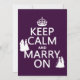 Este é o clássico cartaz de guerra "Mantenha a Calma e Continue" reescrito para "Mantenha a Calma e Case". Ele tem silhuetas de dois casais, ambos com duas noivas, em pé sobre as letras. É um ótimo presente para casamentos lésbicos, ou presentes em apoio à igualdade no casamento.
