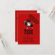 Popular "Mantenha-se calmo" com um Bode real. Design em cartão de convite vertical com fundo vermelho escuro e textos para a Celebração do Ano Novo Chinês do Bode no verso do cartão. Perfeito para o Ano Novo Chinês do Bode, Carneiro ou Ovelha com um acento ocidental.
