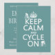 Este design diz "Mantenha a Calma e o Ciclo Ligado", com a coroa tradicional no topo, e dois silhuetas de ciclistas ao lado e ao lado das palavras. É um design simples, mas bonito, que é popular entre ciclistas e ciclistas.