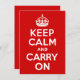 Versão moderna de "Manter Calmo e Continuar" vermelha e branca do poster clássico.