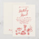 Se você está procurando por um convite único de aniversário elegante e facilmente editado, este é perfeito para você. Como vocês podem ver, ele apresenta um roteiro escrito com a mão vermelha com o WHimsical BRUNCH BIRTHDAY em fundo creme. Com uma mão vermelha colorida, desenhada TABLEWARE de vinho, uvas, panquecas, buquê floral, chá e cupcakes. Com a RSVP nas costas. Com informações inteiras que podem ser personalizadas facilmente clicando no botão personalizar. Este convite de aniversário de tendências Quirky e exclusivo também é um convite eletrônico digital se você quiser enviá-lo por e-mail ou texto. Então pegue e faça seus convites verdadeiramente engajados.