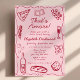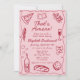 Whimsical e desenhado à mão, esta design de festa retrô apresenta uma encantadora cor rosa e tinto-de-vinho, uma brincalhona moldura e ilustrações da culinária italiana. Em conjunto com fontes elegantes e com letra escrita à mão, este design é perfeito para adicionar um toque de talento de vintagem ao seu evento. Ideal para chás ou chás de panela de casais — especialmente aqueles com um tema de pizza ou pasta.