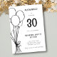 Celebre um marco em estilo com este convite de aniversário moderno, preto e branco. Com um layout limpo com balões desenhados em linha simples e tipografia ousada, este convite é perfeito para comemorações de aniversário de adultos — seja um 30, 40º, 50º ou qualquer idade que você escolher! Este modelo totalmente personalizável permite personalizar as informações de nome, idade, data, hora, local e RSVP. A design neutra do ponto de vista do gênero funciona perfeitamente para homens ou mulheres, oferecendo uma aparência de classe e eterno adequada para reuniões casuais ou partidos formais.