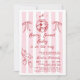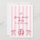 Whimsical Drawn Red A Berry Sweet Chá de fraldas Invitation Sweet quirky berry Termo convite de chá de fraldas com um cesto de morangos, dois arcos e um padrão listrado branco e vívido, cor-de-rosa. O verso do convite também apresenta o padrão riscado e ilustrações desenhadas à mão.