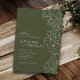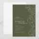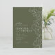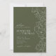 Ilustração delicada e elegante de flores desenhadas à mão e detalhes modernos de tipografia de scripts, em verde e branco escuro, simples e romântico. Convites de casamento floral de excelente para casamento rústico moderno, casamento de jardim de campo e casamento simples de boho no verão e no inverno. Totalmente personalizável com qualquer cor para corresponder ao seu tema de casamento. Veja todas as peças correspondentes na coleção.