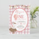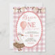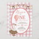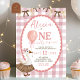 Pink Quirky Hand Desenhado Um Bobo Ganha Aniversário, Arco Castanho Coquette Aniversário Convidado, Editável Pink Balão Primeiro Aniversário