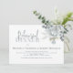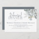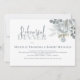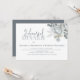 Este design apresenta uma cor aquosa azul-poeirento folhagem floral, um código QR com instruções para o evento online de janto de noivos de ensaio, moderna letra de um script de caligrafia elegante, simples rosa botânico verde-verde simples, moderna letra de tipografia minimalista, estilo de primavera de verão no outono, romântico elegância suave simplista, endereço web adiciona seu URL, na noite anterior