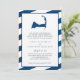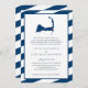 Anúncio de casamento para o seu casamento em Cape Cod. Mapa de Cape Cod Massachusetts com um coração vermelho sobre East Harwich. CORES em MARINHO AZUL e branco. faixas diagonais AZUE marinho no fundo. Uma cor de cinza de aço para a inscrição. Para obter informações sobre alterações de design personalizadas pelo designer independente, envie um email para paula@labellarue.com ANTES de personalizar ou fazer um pedido.
