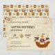 Zarpem para a aventura com este convite de aniversário infantil do mapa do tesouro do navio pirata. Com uma tripulação pirata divertida, um mapa do tesouro detalhado e elementos náuticos, é perfeito para a celebração de qualquer pequeno capitão. Este convite emocionante é ideal para uma festa temática pirata e promete um bom momento de pirataria.