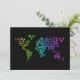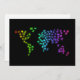 Mapa do mundo formado por ilustrações de animais. Bonita e divertida. Os animais são matizes néon coloridos num fundo preto que realmente faz as cores brilharem.