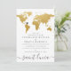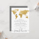 Convites Mapa Mundial de Casamento no Exterior Dourado Chic