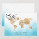 Planejando o casamento no destino romântico? Convide seus convidados com este lindo convite com mapa mundial dourado e seu destino personalizado marcado com o coração móvel.