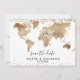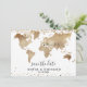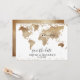 Planejando o casamento no destino romântico? Convide seus convidados com este lindo convite com mapa mundial dourado e seu destino personalizado marcado com o coração móvel.