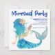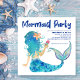 O chá de panela quadrado temático do mar apresenta uma sereia de aquarela desfrutando de uma bebida tropical com legenda "Mermaid Party" em letras violetas azuis. Arte por KL Stock
