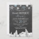 Flocos de neve elegante, doce inverno, dezesseis / 16º modelo sobre o quadro-negro de cinzas escuras com bordas de flocos de neve brancos e azuis e pinheiros Maravilha de inverno. Preencha suas informações nos pontos, Você pode optar por personalizá-las mudando ainda mais as fontes e as cores das letras. — O convite é adequado para festas de aniversário de inspiração de serras quentes de inverno. — Se precisar de assistência, por favor, entre em contato comigo!