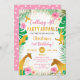 Animais da Selva Floral Rosa Safari Meninas Safari Convite de Aniversário