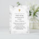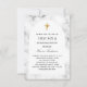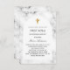 Um quadro de arco branco e impressão de mármore como fundo. Uma cruz ouro. Personalize e adicione um nome e detalhes.