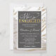 Ponha o tom para uma festa de noivado moderna, moderna e verdadeiramente memorável! Esta maravilhosa folha de ouro falsa no convite de fundo da Marble White & Cinza é perfeita para uma celebração elegante. Um na moda, chic e doce design para uma celebração glamourosa! *Você pode escolher o verso com uma foto ou apenas com um fundo de mármore claro.