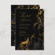Um fundo de abstrato que lembra o mármore em tons de cinzas de carvão a preto, veinado com ouro reluzente, é o pano de fundo para textos elegantes e layouts modernos de design nos pedaços desta bela suíte de casamento. O convite mostrado aqui apresenta o texto acima mais o texto de script de fluxo opcional de 'Chá de panela' e um modelo para adicionar os detalhes de evento pertinentes. Procure ID644 para ver todas as peças de coordenação neste conjunto.