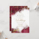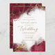 Um fundo de abstrato que lembra o mármore em tons de burgundy veinados com ouro reluzente é o pano de fundo para textos elegantes e layouts modernos de design nos pedaços desta bela suíte de casamento. O convite de casamento mostrado aqui contém o texto acima, mais o texto opcional do roteiro de 'casamento' e uma modelo para adicionar seus detalhes de casamento pertinentes. Procure ID644 para ver todas as peças de coordenação neste conjunto.