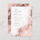 Um fundo de abstrato que lembra o mármore em tons de rosa pincelado suave através do esticado e veinado com ouro rosa de reluzente é o pano de fundo para o texto elegante da escrita e os layouts modernos da design nos pedaços desta bela suíte de casamento. O convite mostrado aqui apresenta o texto acima mais o texto de script de fluxo opcional de 'Chá de panela' e um modelo para adicionar os detalhes de evento pertinentes. Procure ID644 para ver todas as peças de coordenação neste conjunto.