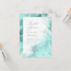 Um fundo de abstrato que lembra o mármore em tons de palha macia através do azul-aqua profundo e veinado com prata brilhante é o pano de fundo para textos elegantes e layouts modernos de design nos pedaços desta bela suíte de casamento. O convite mostrado aqui apresenta o texto acima mais o texto de script de fluxo opcional de 'Chá de panela' e um modelo para adicionar os detalhes de evento pertinentes. Procure ID644 para ver todas as peças de coordenação neste conjunto.