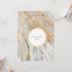 Personalize as modelos para se adequar à sua celebração muito especial. Um belo fundo de linhas de aquarela listradas misturando-se entre si tem delicados flecks e veias de ouro falso correndo por ele dando a aparência de um mármore exclusivo e supermercado. Banhada em tons de azul pastel, pêssego, marfim e ouro falso, este design de tinta líquida tem uma estrutura geométrica redonda ouro no meio na qual aparece um modelo para sua declaração personalizada da ocasião especial que você está celebrando. Este design elegante e na moda gráfico é ideal para todos os casamentos; aniversários; aniversários; aniversários e qualquer marco ou celebração corporativa que você esteja hospedando ou celebrando. Personalize as modelos para se adequar ao seu evento.