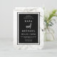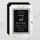 Estes elegantes convites de casamento apresentam um fundo de mármore branco com um quadro preto na moda. Seu texto de convite aparece na tipografia branca moderna.