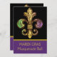 Terças-feiras gordas "Mardi Fleur de Gras" uma flor de lis original em roxo, em verde e o ouro, em convites de festas projetados. Você pode personalizar estes convites mudando as cores do fundo, resizing o design e adicionando o texto para seus detalhes do partido tenha o divertimento com ele!