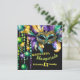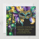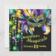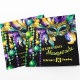 Personalize a frente e a parte traseira deste convite de festas de Mascarada Marid Gras, A frente apresenta uma máscara vibrante de mascarada e miçangas Mardi Gras no plano de fundo. O reverso da placa apresenta a máscara e as miçangas do Mardi Gras e deixa espaço para personalização das informações do seu partido. Altere a fonte, o estilo e a cor da fonte para corresponder à sua víbora de festa. Aproveite suas festividades!