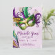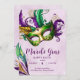 Convite de festas perfeito e único - O tema Mardi Gras e as cores Festivas Nova Orleans Mardi Gras trocaram o partido por favor em ouro verde e roxo, as tradicionais cores do carnaval de terça-feira gorda. Convidado perfeito para as festas temáticas da NOLA. Design de brilho ondulado.