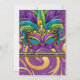 Incrível roxo, aqua, mascarada verde e ouro e convite de festas Mardi Gras que você pode personalizar. Adicione os detalhes da sua festa à frente. Máscara Mardi Gras com penas em aqua, verde e ouro Mardi Gras com fundo roxo e dourado enrolado adornam a frente desses convites. O verso da placa tem a mesma ilustração. Que os bons tempos se desenrolem e se divirtam na sua festa! Aproveite!