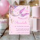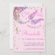 As meninas personalizáveis merecem convite de aniversário, apresentando uma mágica sereia rabanhada em falso brilho, em tons de rosa, falso ouro e roxo, com cavalos de mar bonitos.
