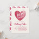 O convite à moda do chá de fraldas que caracterizam o coração e tipografia moderna e a caligrafia script para destacar o nome da mãe.